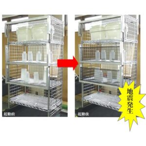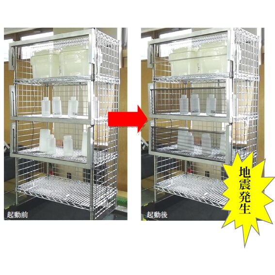 その他収納物落下防止装置 tokyomt 2025年10月30日 停電時でも動作する棚収納物落下防止装置地震発生時、棚に収納してある物の落下を防止する装置です。 設定可能な地震加速度の閾値(しきいち)を感知すると、扉の無い棚の 水平レベルに収まる蛇腹付き保護バーが自動で跳ね上がる、または 上段から保護バーが降りてくることにより収納物の落下を防止します。 地震を感知すると上部より保護バーが自動で落下するタイプと、下部より 蛇腹付き保護バーが自動で跳ね上がるタイプをご用意しています。棚収納物落下防止装置動画ここをクリックカタログ請求、ご購入やお問い合わせは屋敷まで。メールTEL